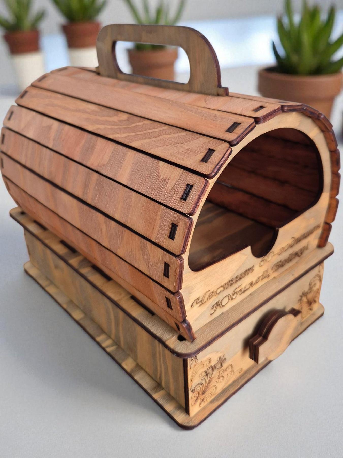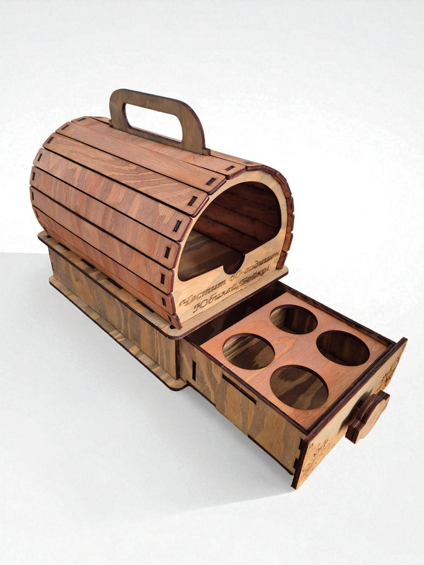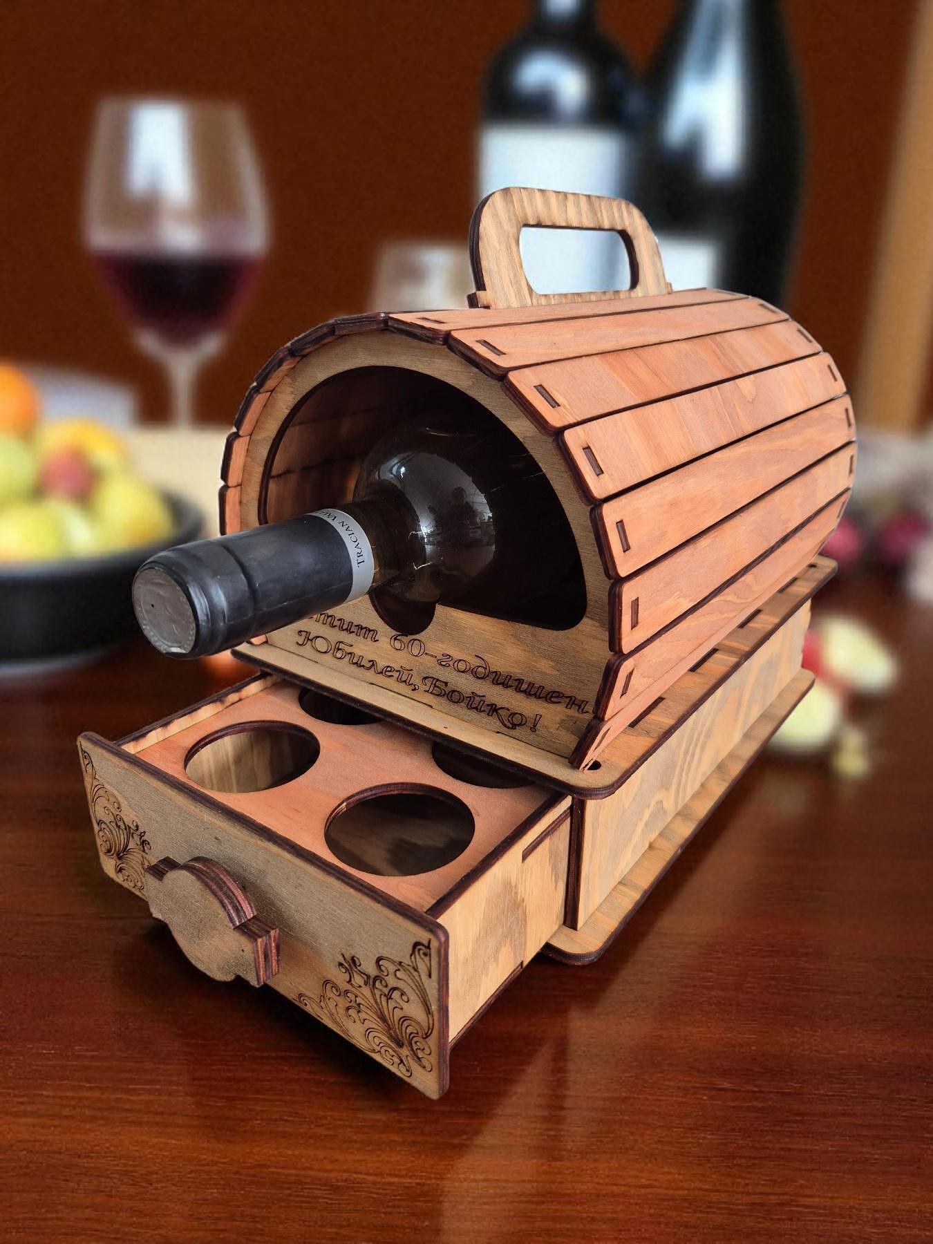 Butoiaș din lemn pentru vin cu sertar – personalizat, lucrat manual