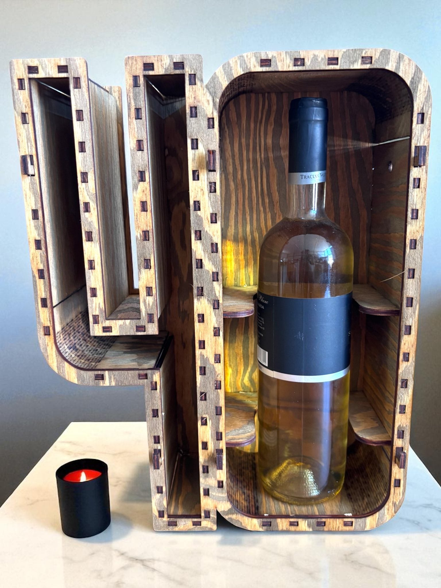 📏 Dimensiuni: 35 × 27 × 11 cm – suficient spațiu pentru o sticlă de vin sau altă băutură