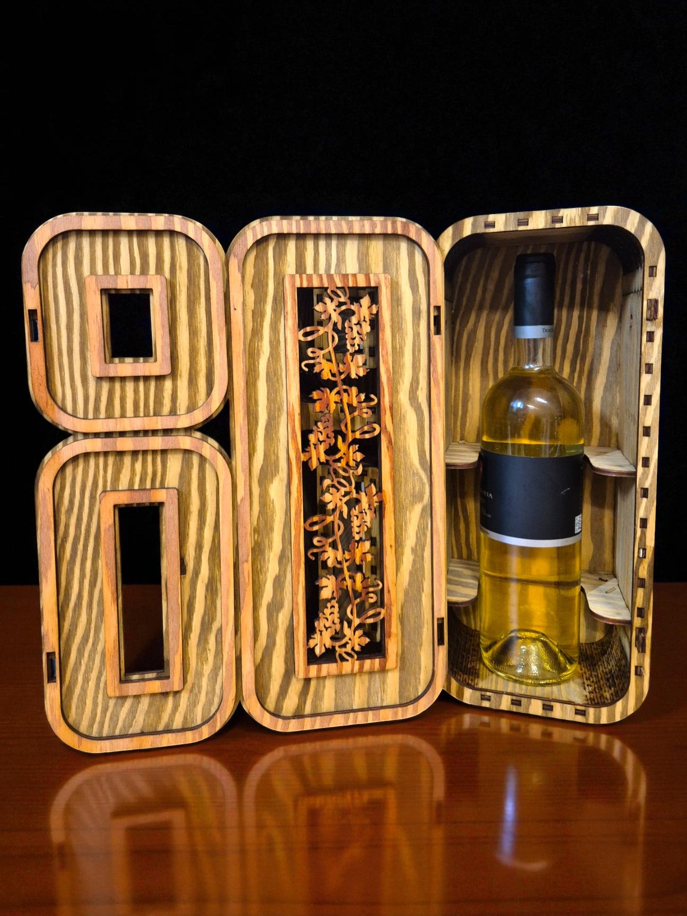 Realizată din lemn de calitate superioară, decorată cu elemente florale gravate, cutia este perfectă pentru o sticlă de vin, țuică sau băutură preferată, transformând orice cadou într-un gest memorabil.