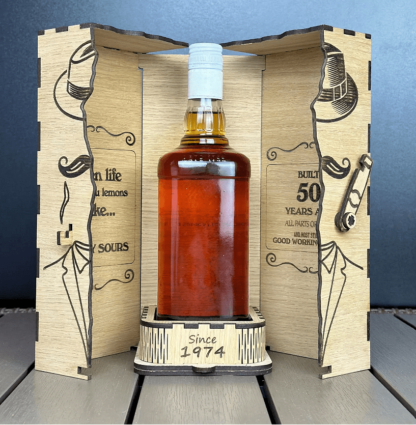 Cutia noastră din lemn natural, lucrată manual și gravată la comandă, este alegerea perfectă pentru a oferi o sticlă de vin, whisky sau șampanie cu stil.