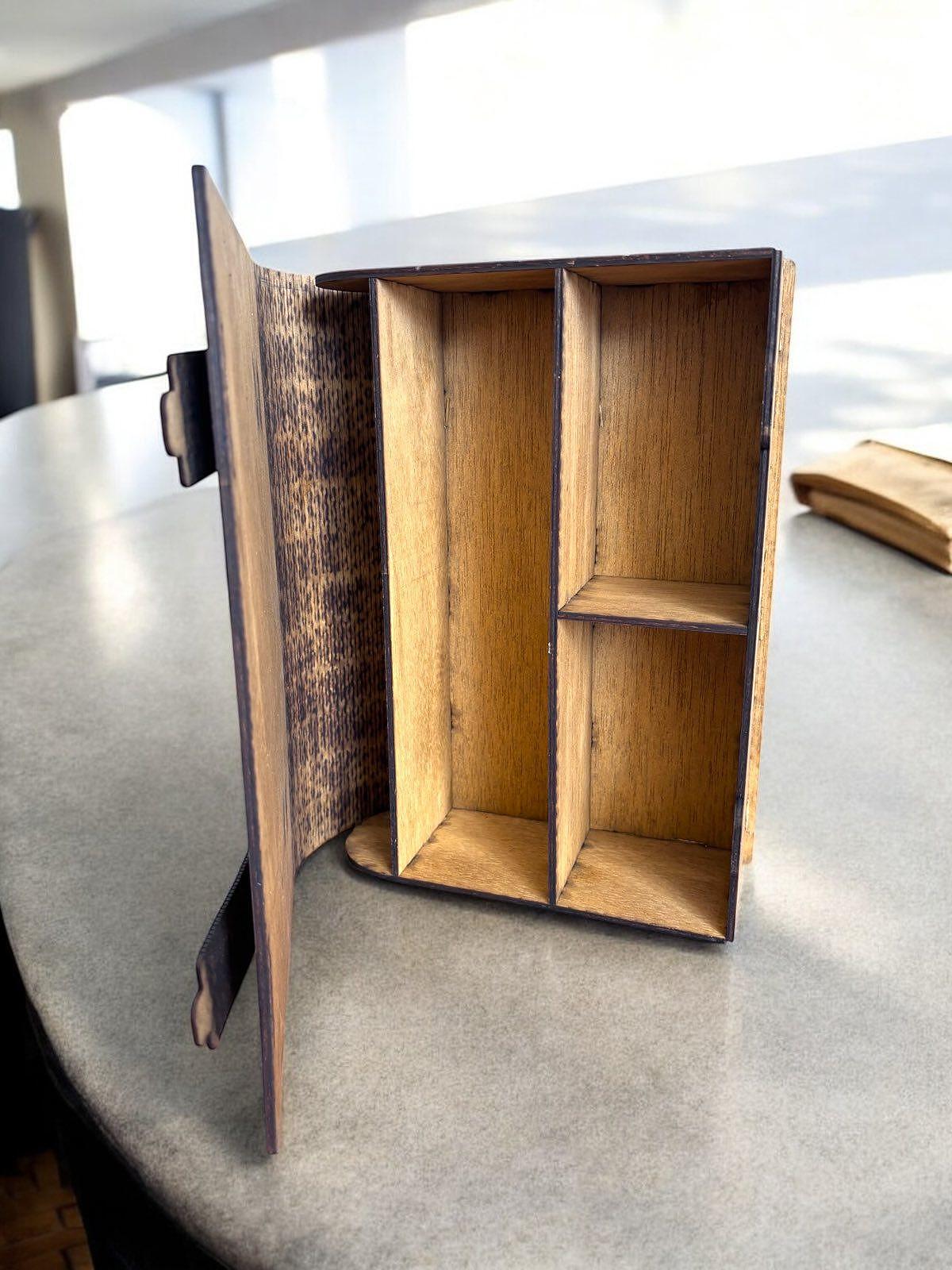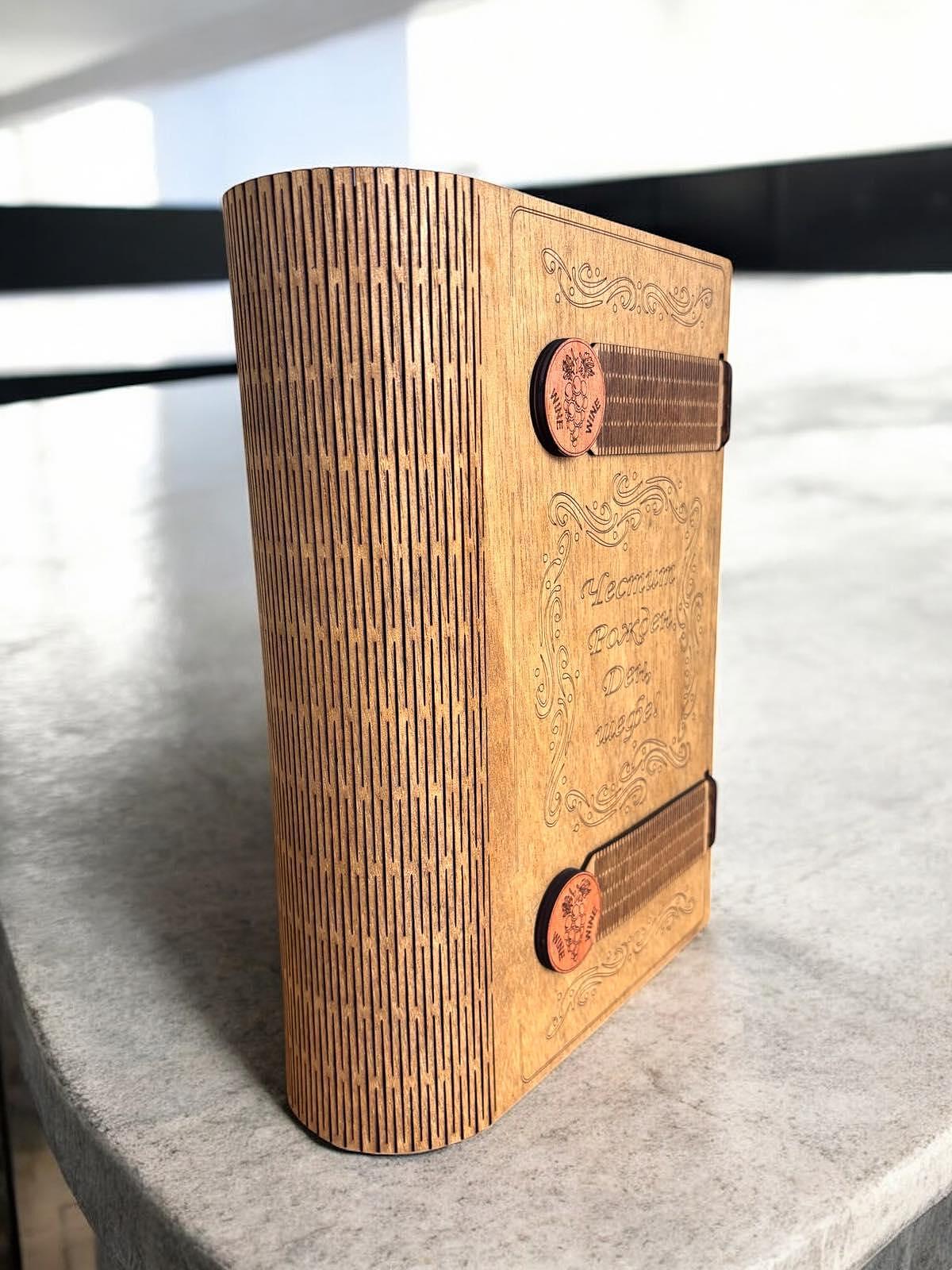 Această cutie personalizată din lemn pentru o sticlă de vin și două pahare este realizată cu o atenție excepțională la detalii – un amestec perfect între eleganță și rafinament.