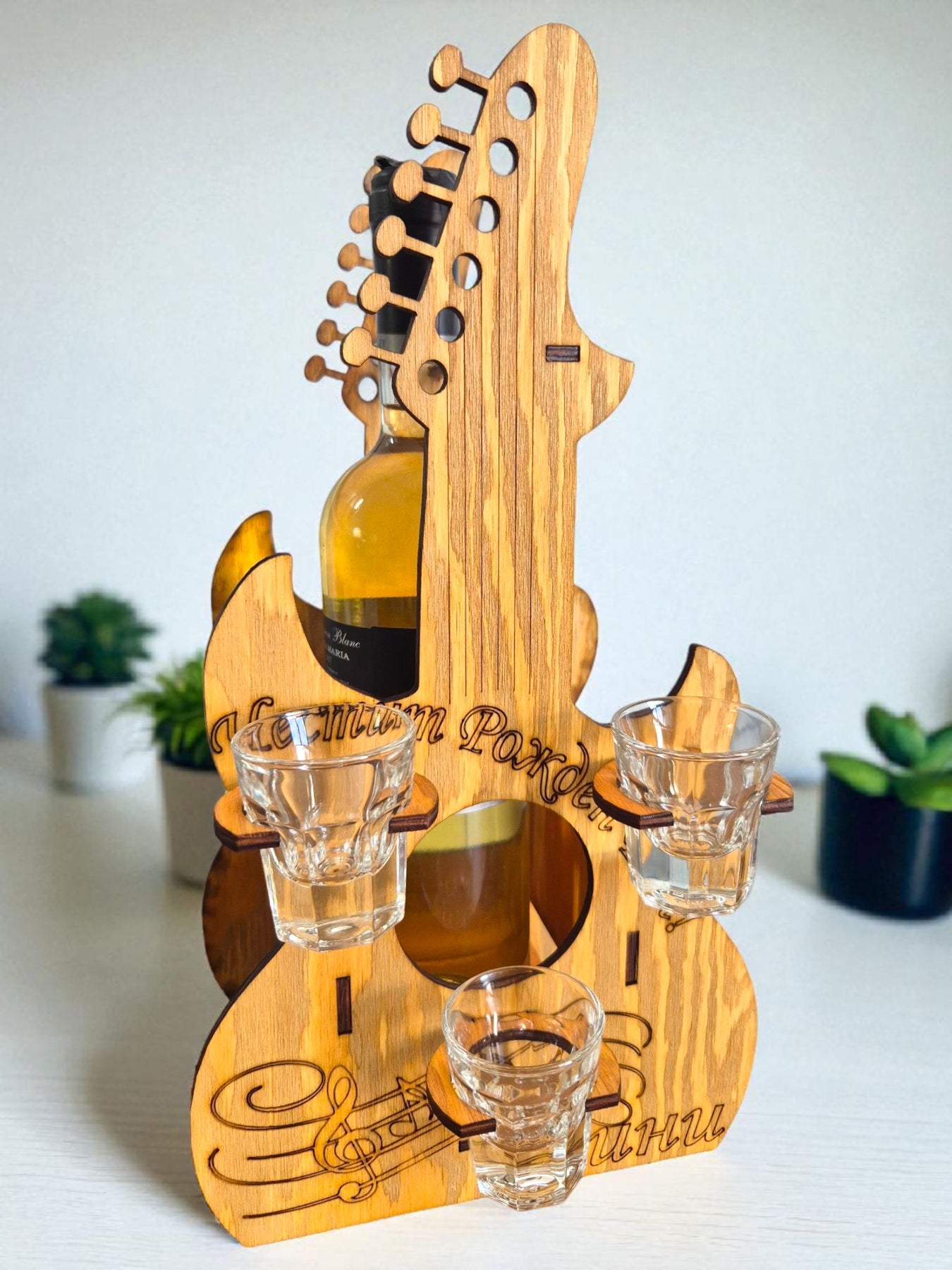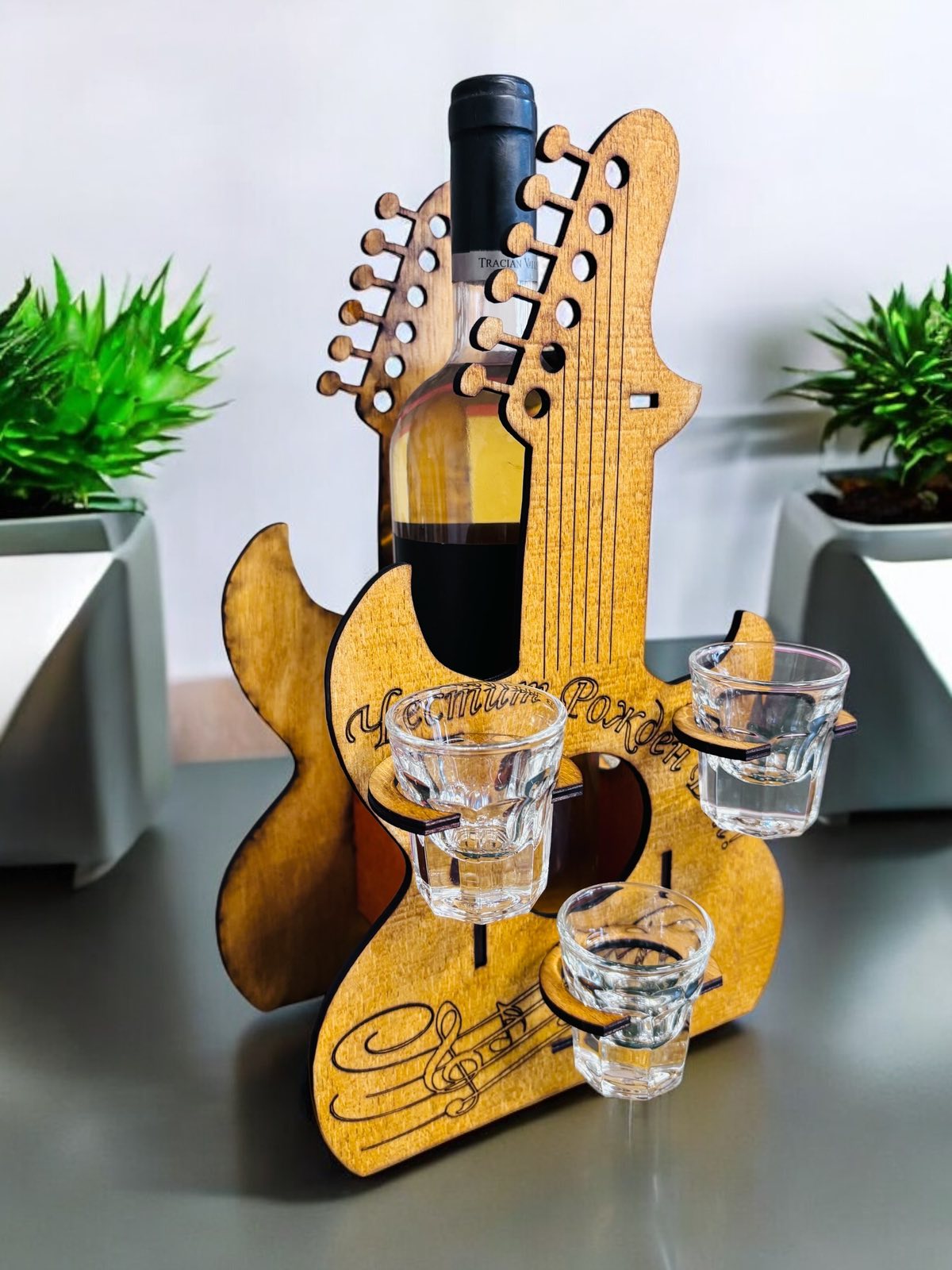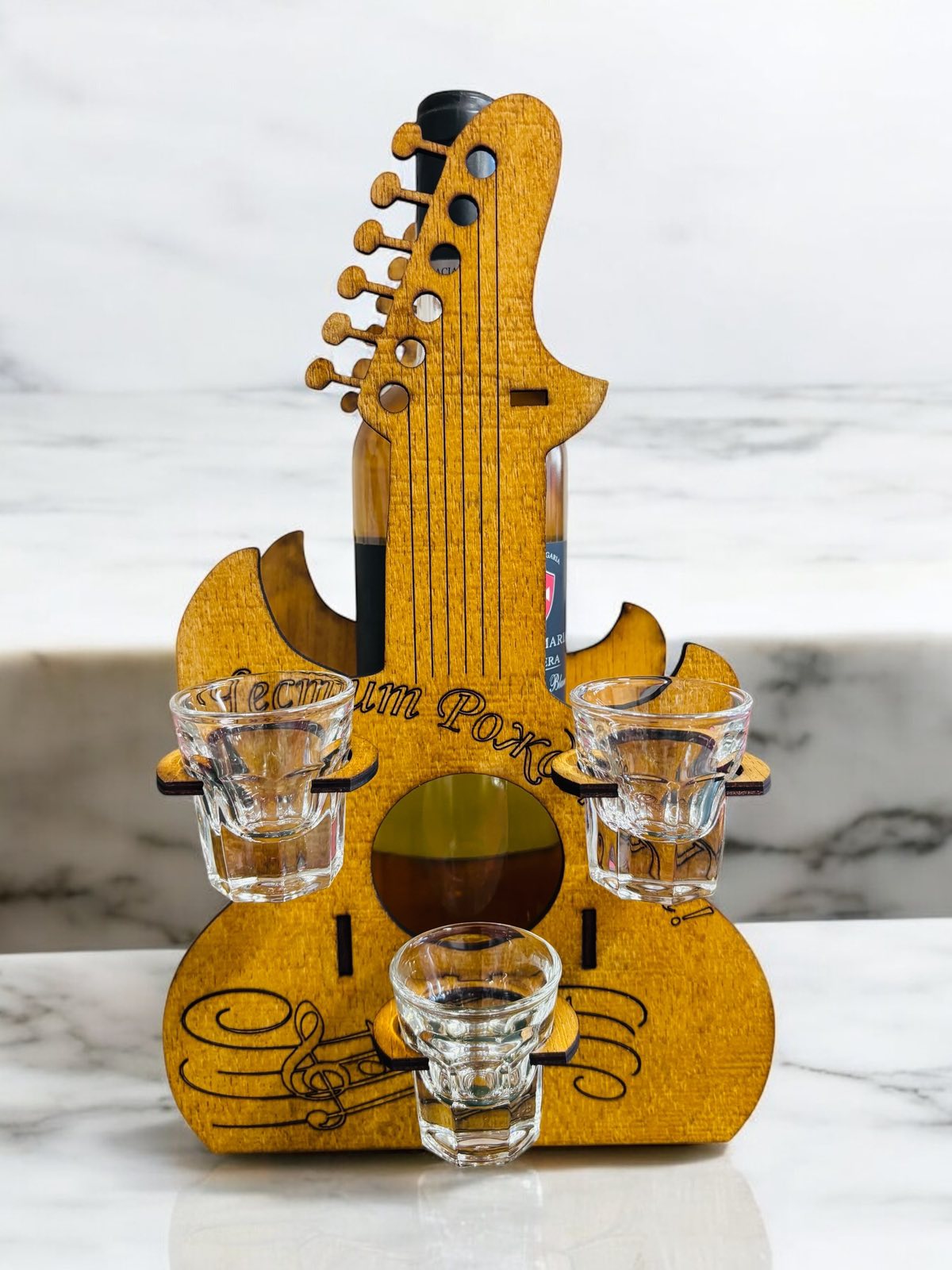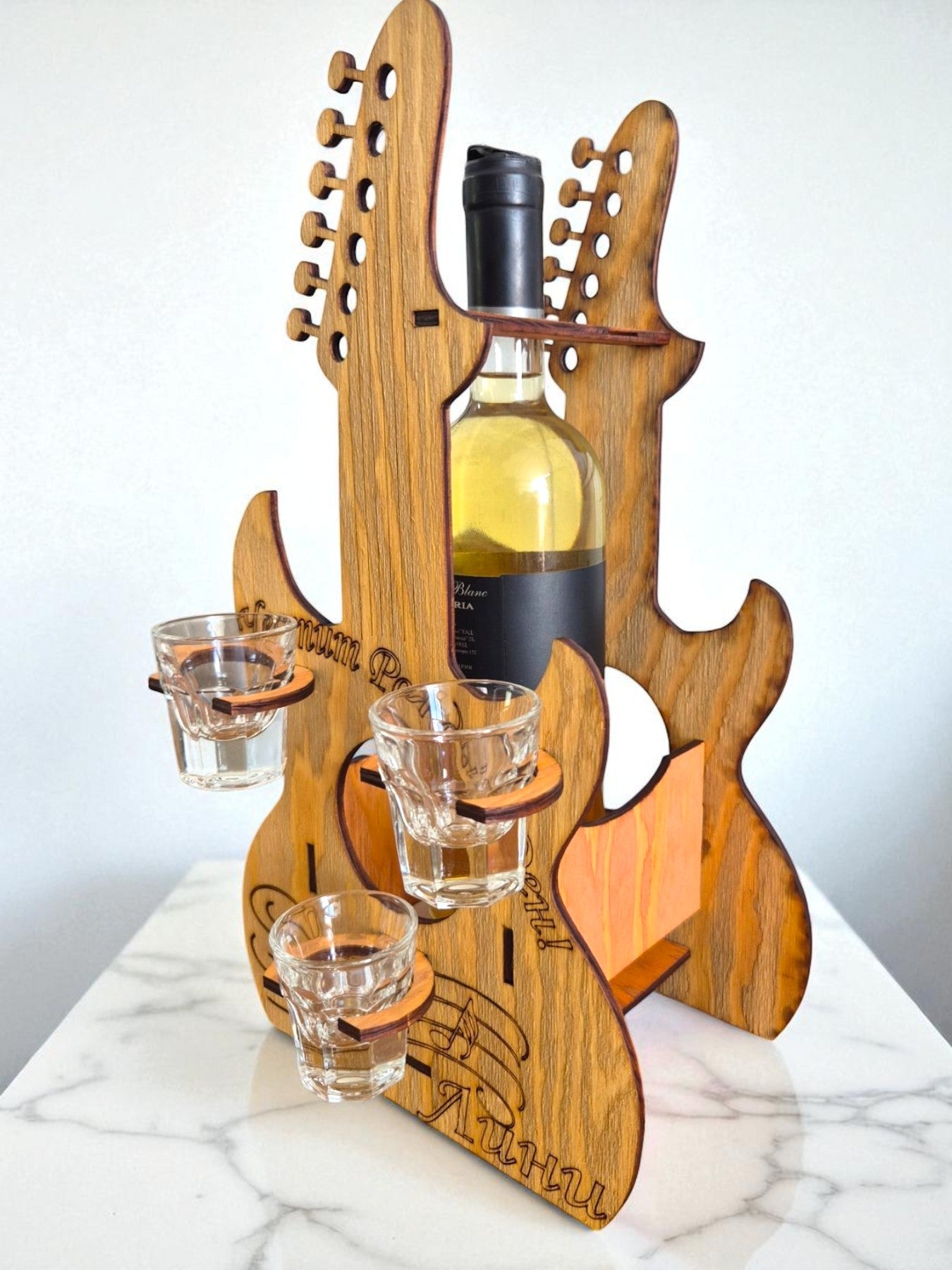 Mini bar din lemn în formă de chitară – lucrat manual, cu 3 pahare incluse și personalizare