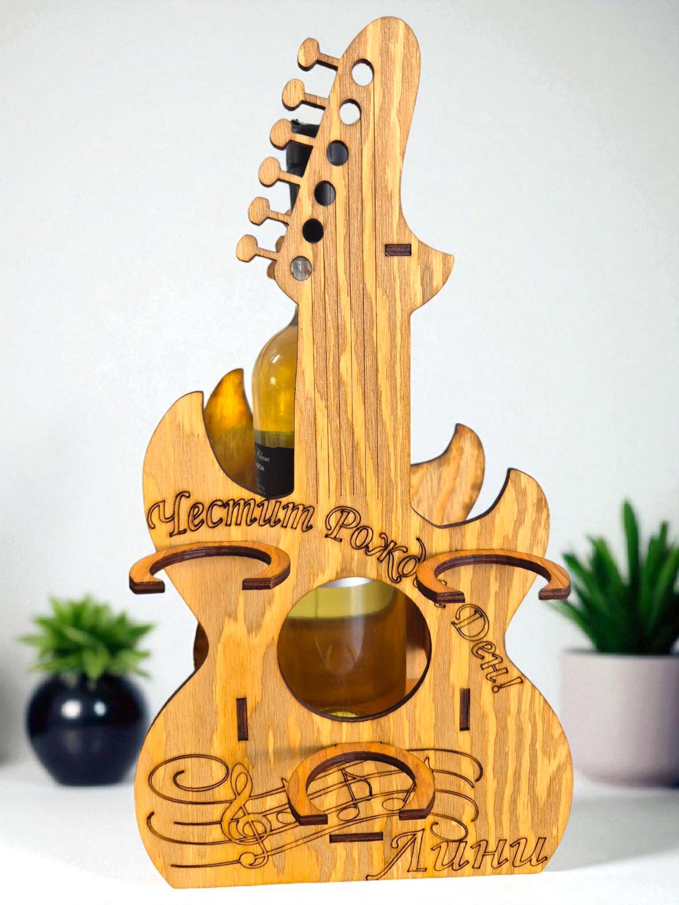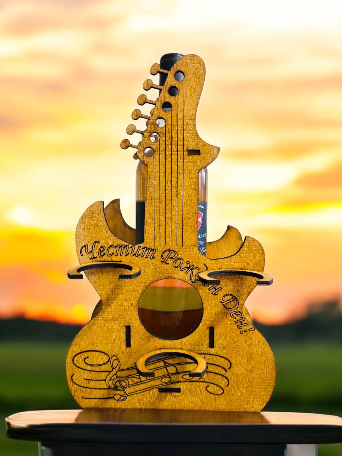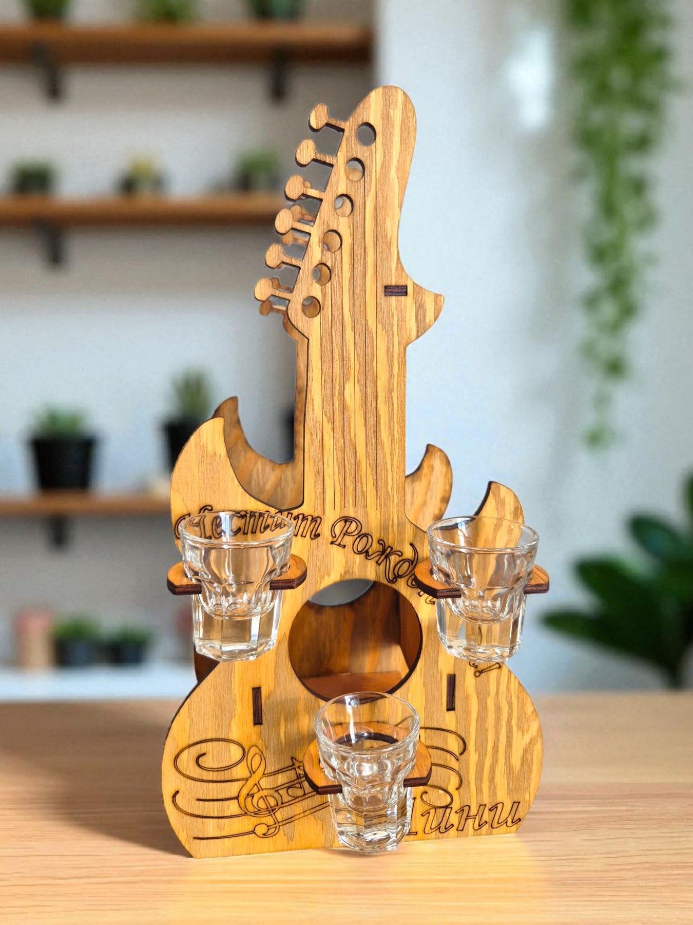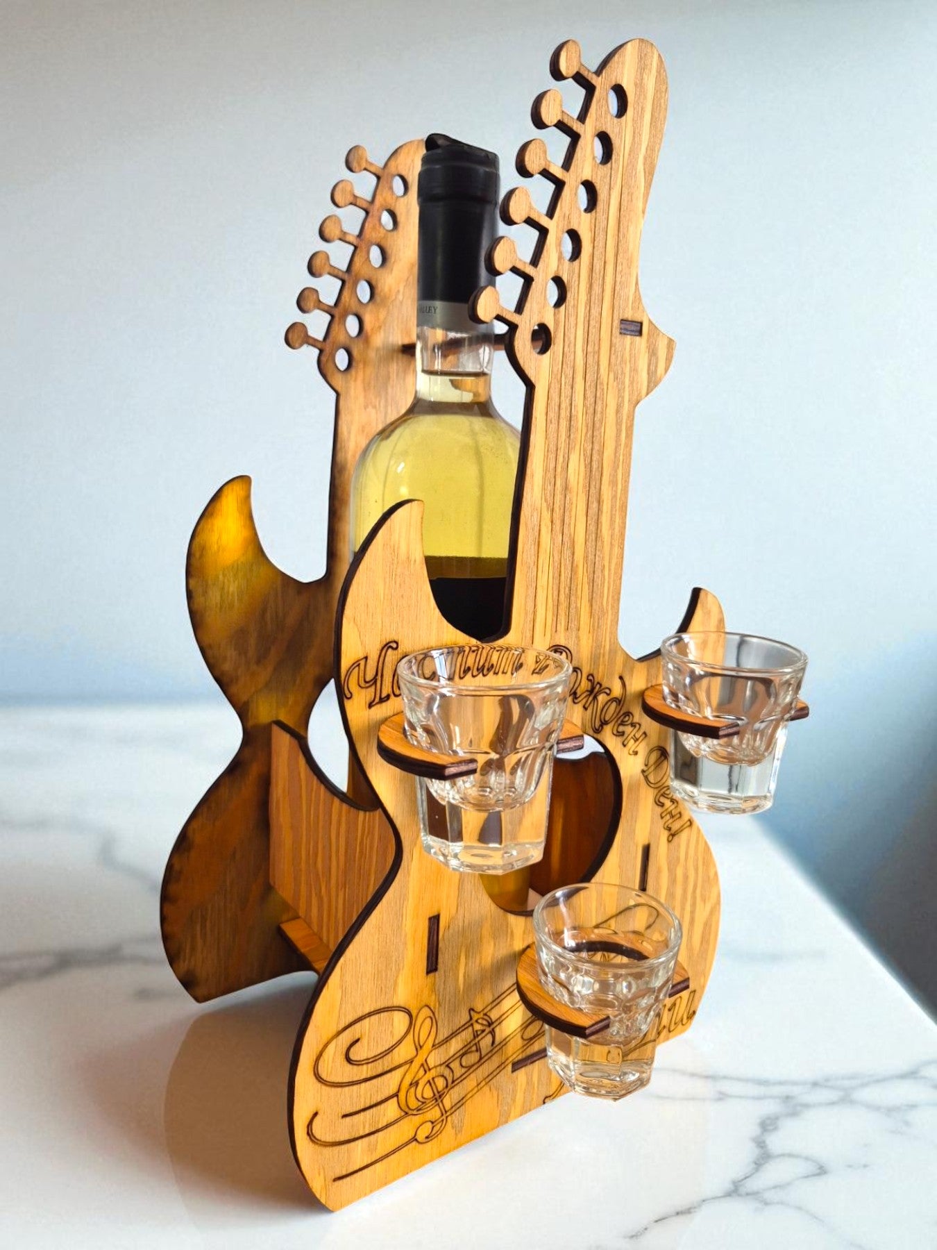 Mini bar din lemn în formă de chitară – lucrat manual, cu 3 pahare incluse și personalizare