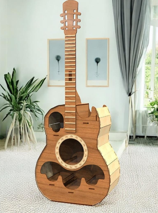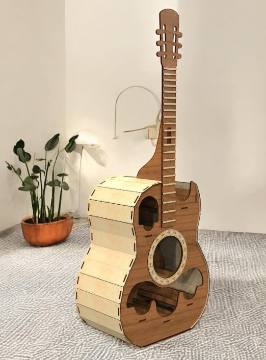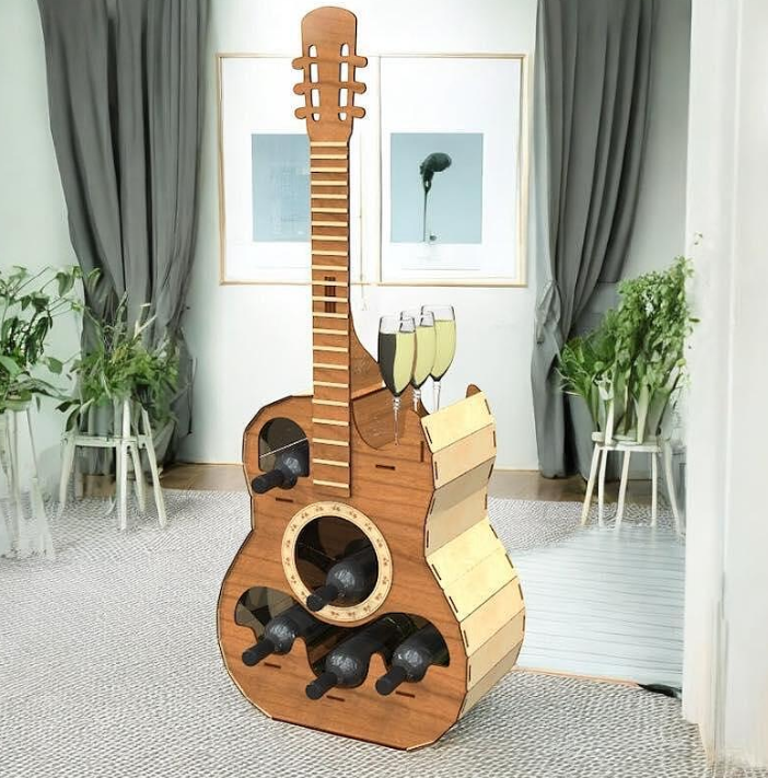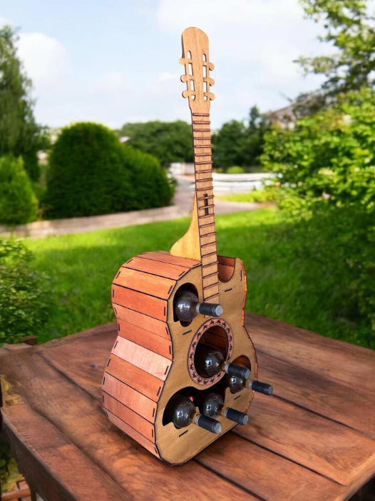 Descoperă un mini bar unic din lemn masiv, realizat manual în forma unei chitare – un detaliu elegant care combină pasiunea pentru muzică cu rafinamentul și funcționalitatea.